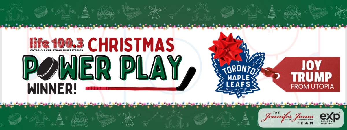 Take your shot at an epic Christmas gift with the Christmas Power Play Contest! Each morning on the Get-up & Go Show (after 7am and 8am), you can call in to play and face up to five Christmas trivia questions! Get one right — you score a ballot for the Grand Prize draw! Choose to stop or keep going for more… but miss one, and you’re back to just one ballot. The Grand Prize is a pair of tickets to see the Toronto Maple Leafs take on the Anaheim Ducks — live in Toronto, March 12! Will you play it safe… or go for all five questions? The Christmas Power Play Contest is in association with The Jennifer Jones Team EXP Realty Brokerage and LIFE 100 dot 3.